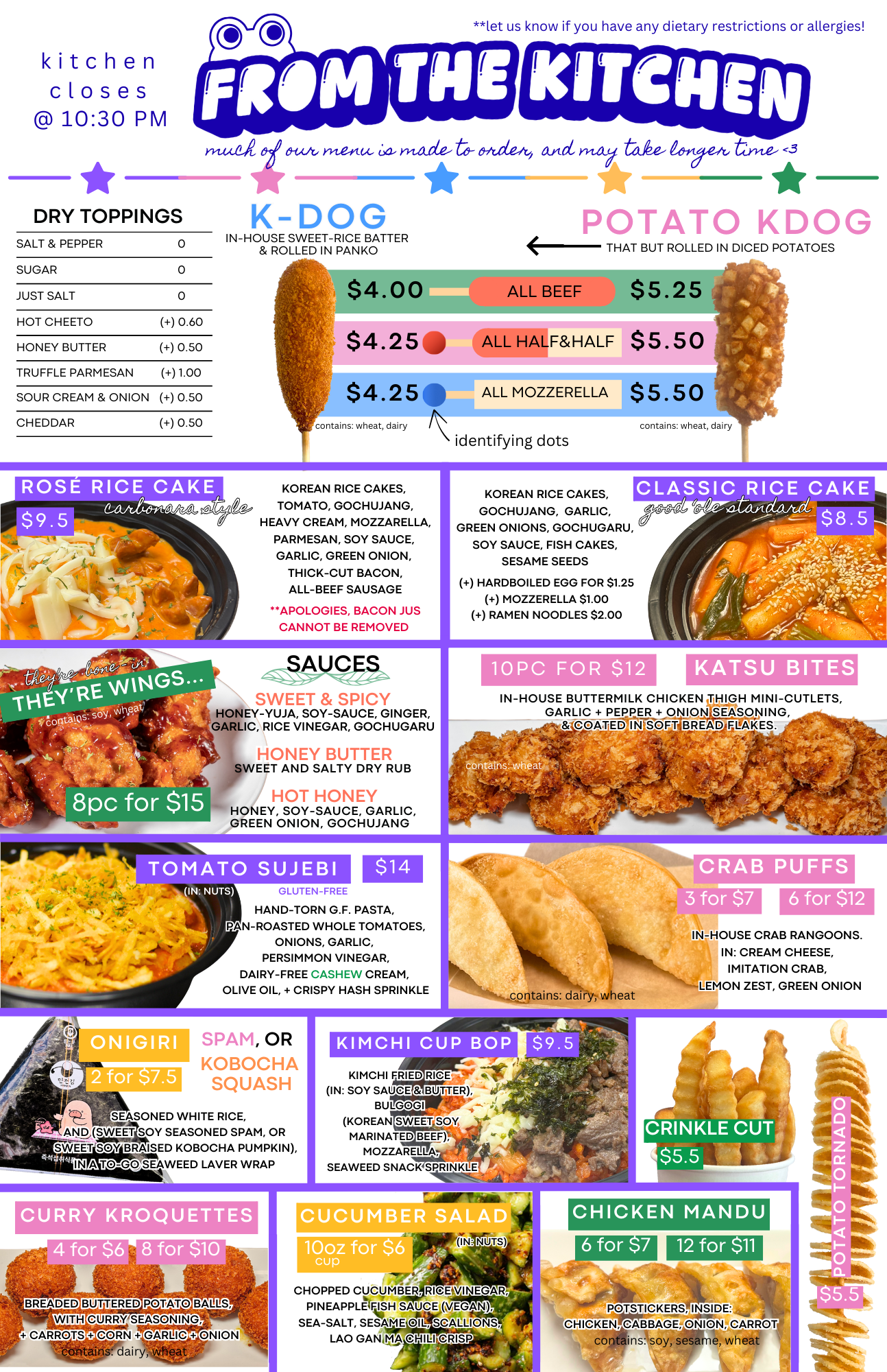 we, periodically, update and rotate our menu.
